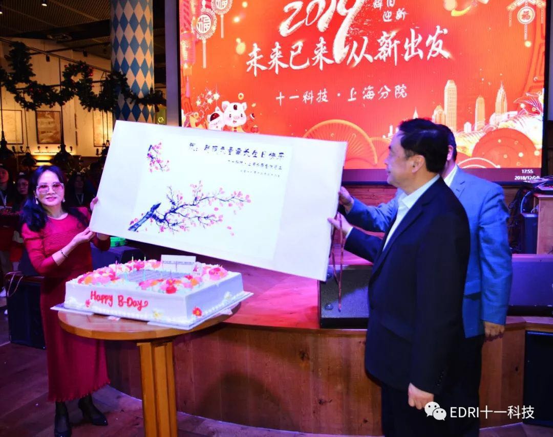 晚會期間正逢趙振元同志的生日,上海分院全體員工共同為趙振元同志送上了深深祝福,一張張珍貴照片記錄了趙振元十八年來帶領十一科技來從弱小走向強大的歷史過程,趙振元同志表示,我把大家的祝福看成是在非常不確定的2019年繼續帶領大家一起前行的期盼,我將與大家共度這充滿挑戰與十分困難的一年。現場氣氛歡樂而溫馨。