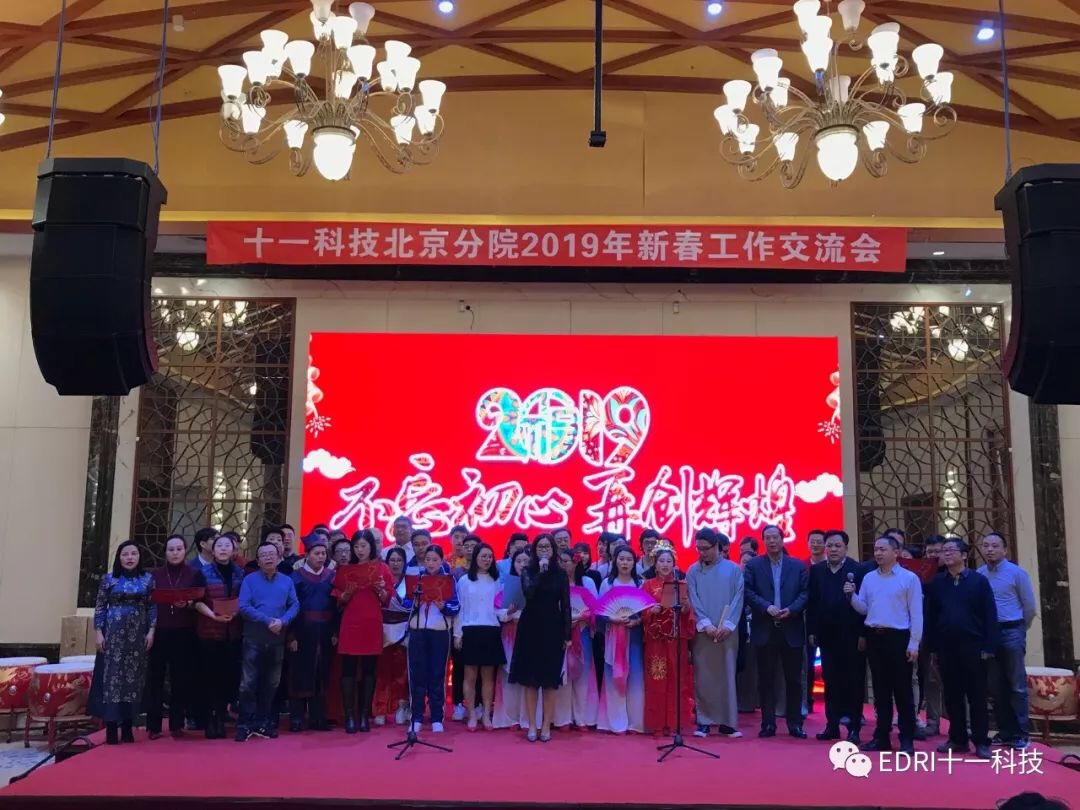 祥云吐瑞,紅梅報春。2019年1月25日下午,十一科技北京分院迎新春工作交流會順利召開,十一科技院長、黨委副書記何平,首席顧問俞世一,北京分院董事長袁士偉、院長李天山、常務副院長王愛華、副院長閻紹榮、姜言濤、喬星、總工程師梁艷兵、總建筑師辛立群、副總工程師宋黎、院長助理張德以及北京分院全體員工、天津分院、山東分院、雄安分院的領導干部、合作伙伴代表,共計百余人共同出席此次工作交流會。