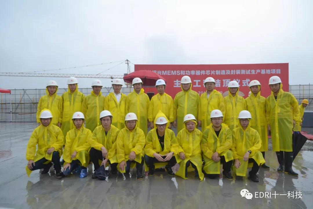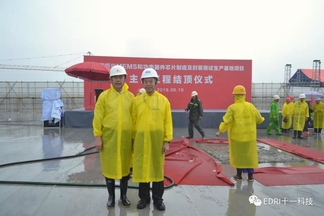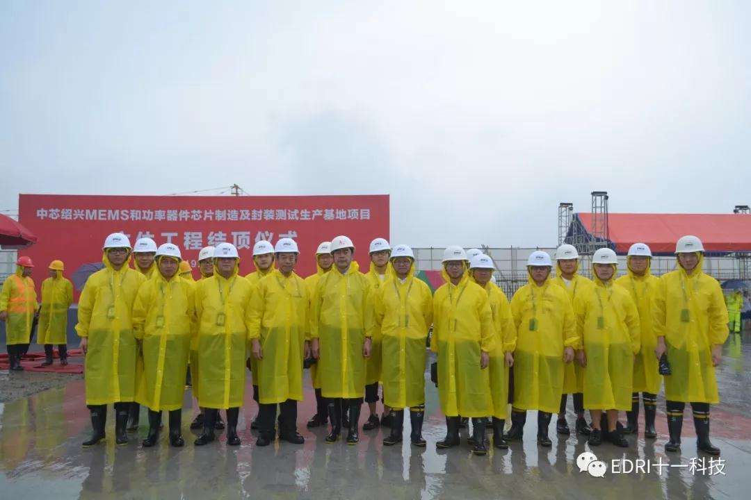中芯紹興項目在雨中進行封頂儀式,馬衛光、陸維、孫哲君、高永崗、丁國興、趙奇、趙振元、白焰等領導出席。