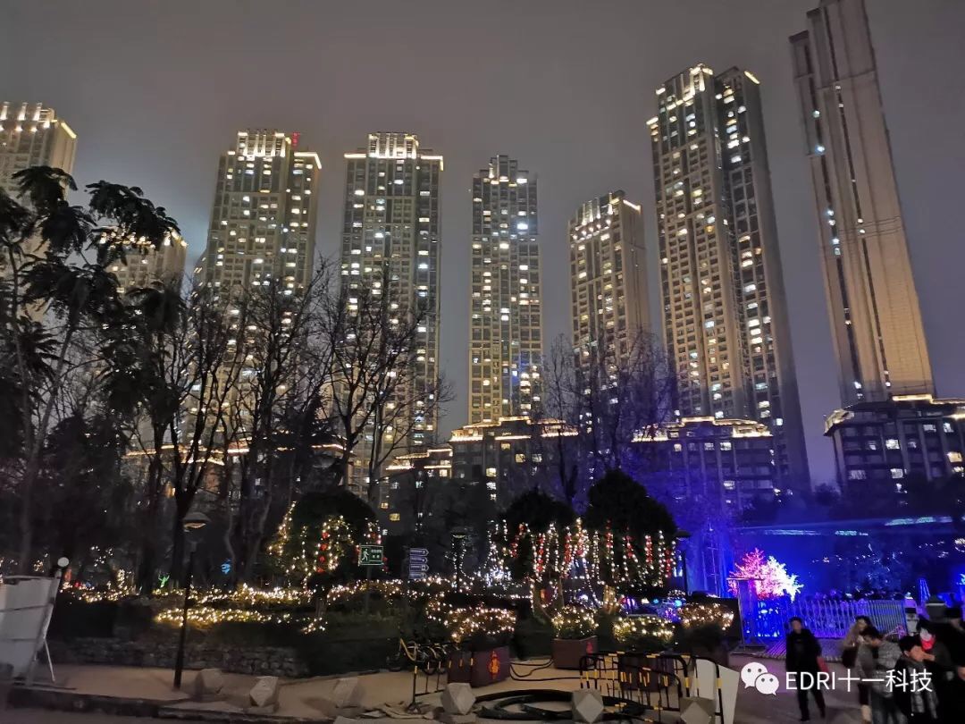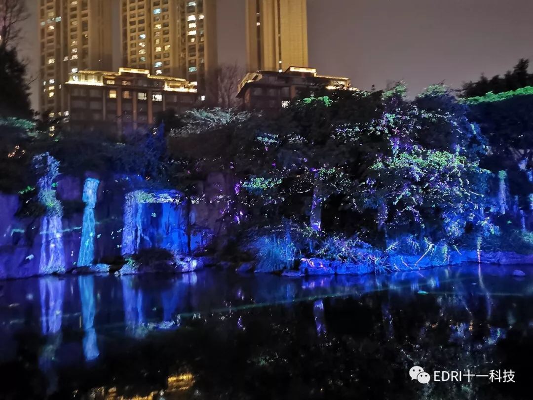 晚上,與太太漫步在成都御景灣小區外,為眼前的夜景所迷住,到處是流光溢彩,五彩繽紛,充滿著節日的氣氛。