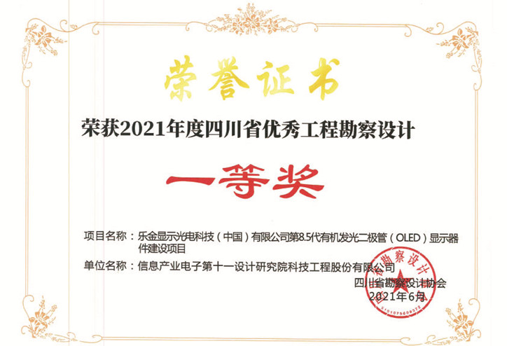 樂(lè)金第8.5代有機(jī)發(fā)光二極管四川省一等獎(jiǎng)